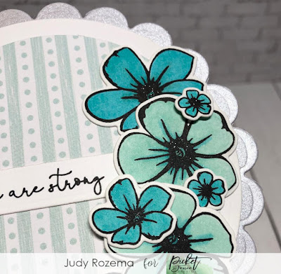 And because we all like sparkle without the mess, I added some shimmer with my Glitter Pen to all the flower centers. The card base is my favorite shimmery silver cardstock from CutCardStock (Curious Metallic Ice Silver).