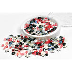Our gorgeous, unique embellishments come either in a baggie so you can store in your own way or in beautiful compact cases with clear lids which are ready to store and use as soon as they arrive, and they even let you peek in from the side to grab the mix you want easily from a stack. The lids are flat, so the containers can be stacked on a shelf or in a drawer. These sparkling sequins range from 3-6 mm within the mixes, and even with the attractive storage are priced beautifully as well.