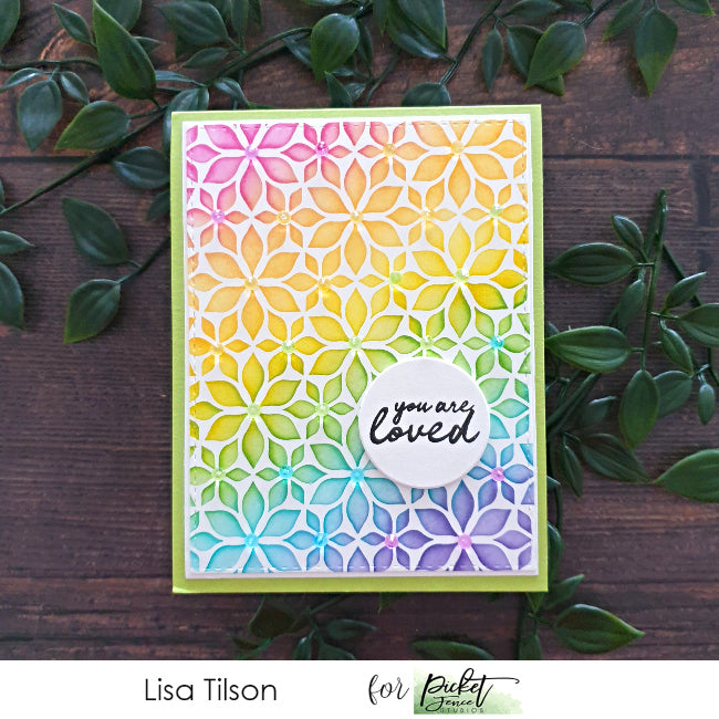 One of the newest additions to Picket Fence Studios ever growing collection of embellishments are Crystalline Diamonds.  These beautiful 3D diamond shaped gems add just the right touch to many types of cards and your everyday crafting needs.  They are approximately 4.2 mm in size and made of very light weight plastic.  Crystalline Diamonds are considered semi-transparent which allow stunning hues of the rainbow to shine through.  1 oz. jar.