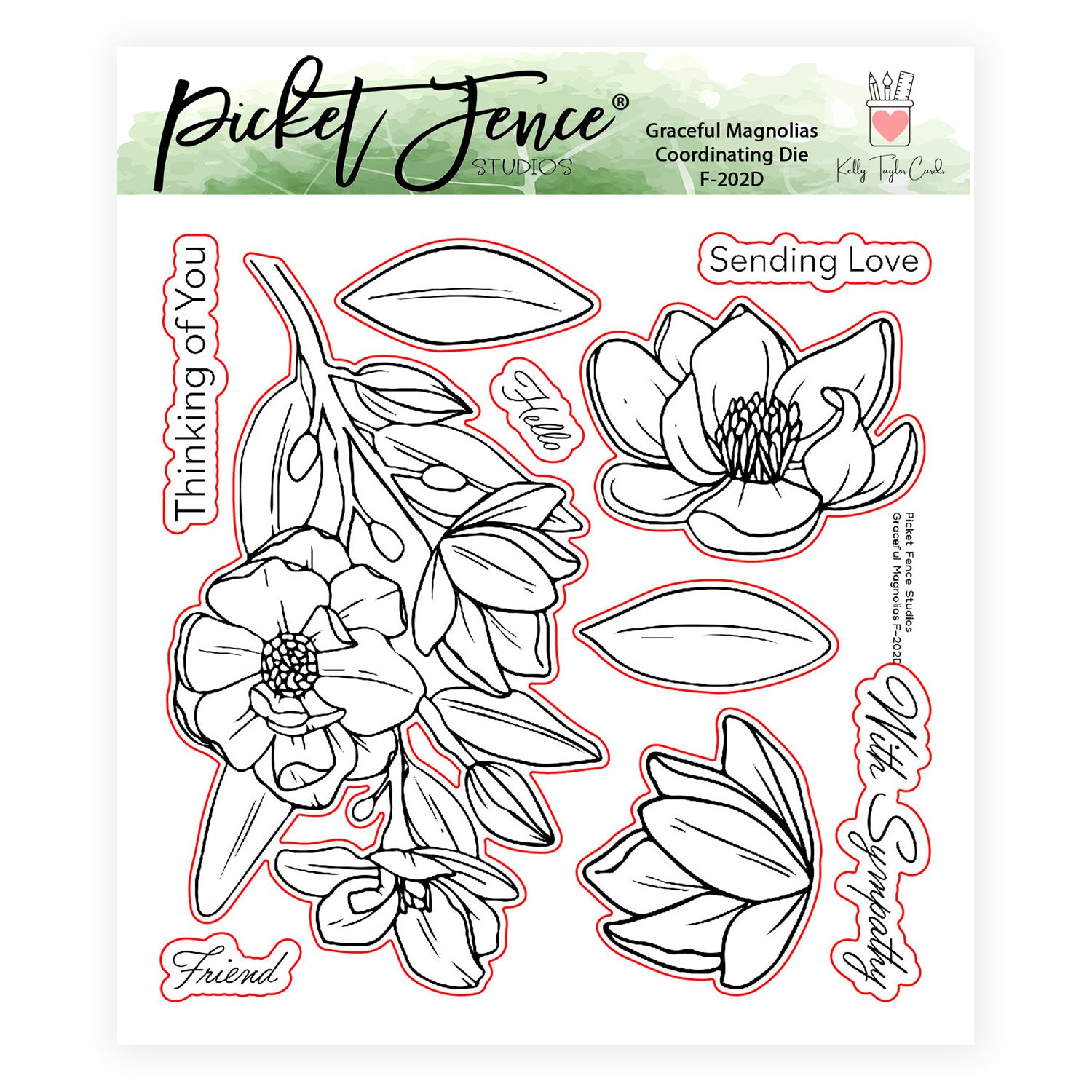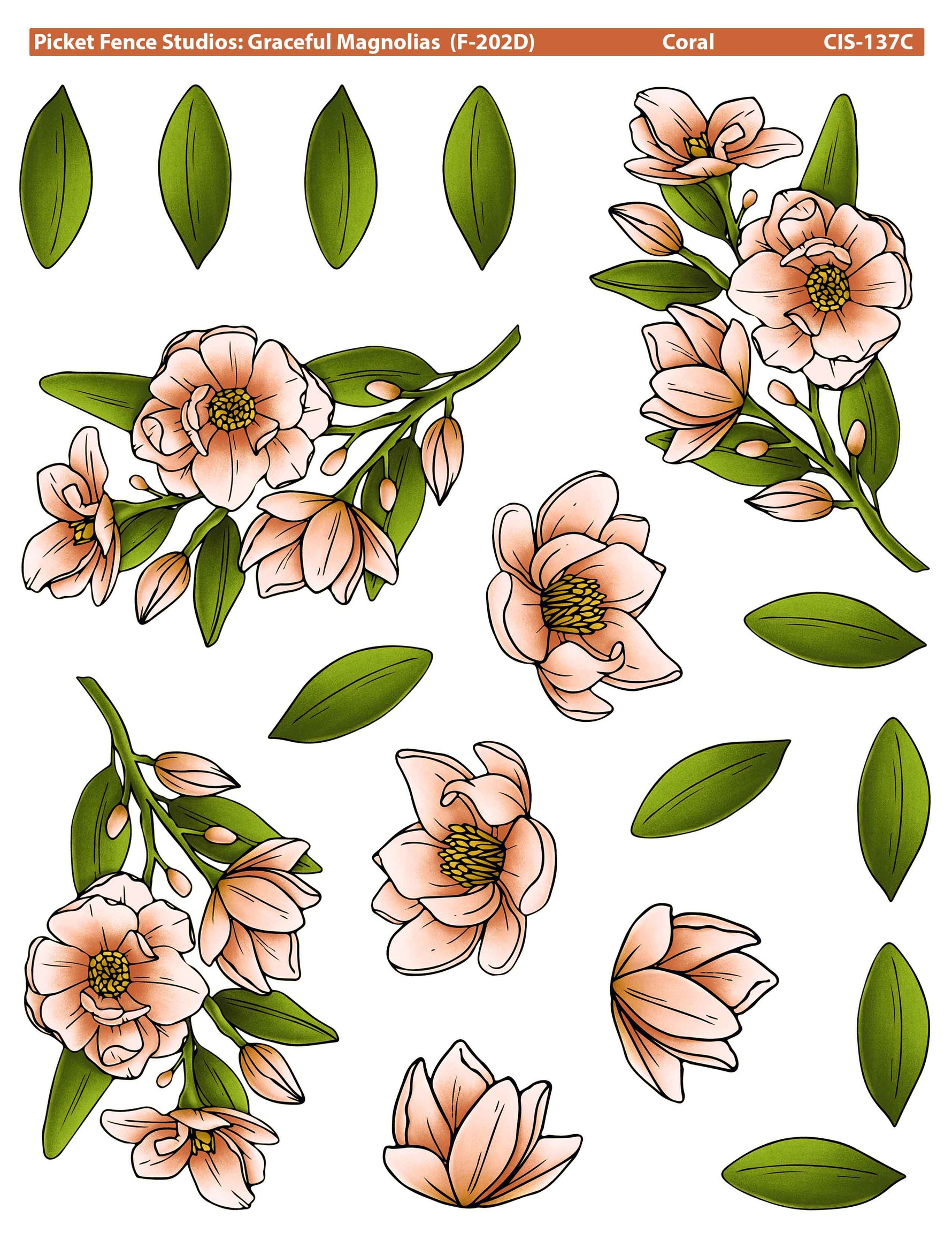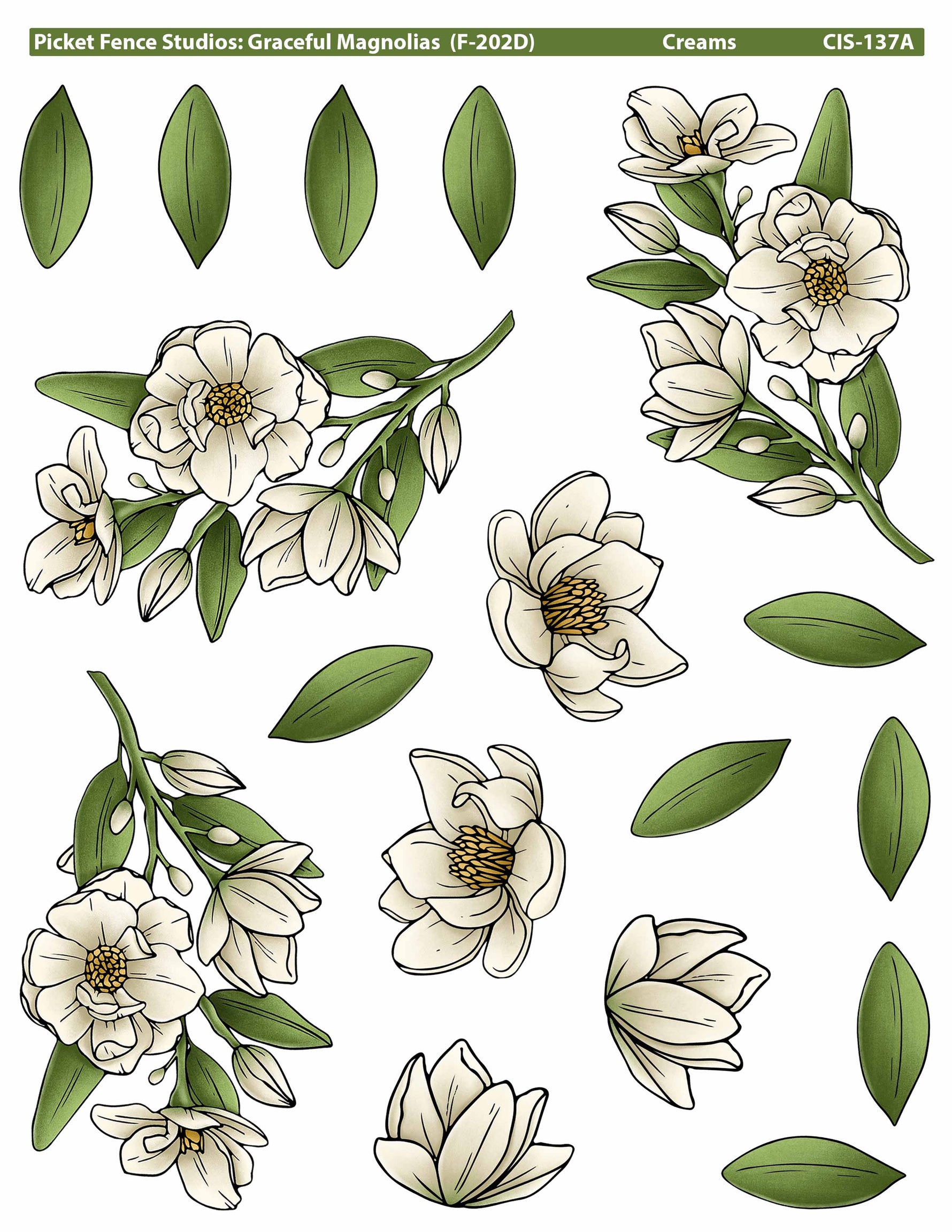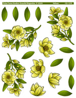Graceful Magnolias with Colored Image Sheets Bundle includes 11 items: 5"x5" stamp set, coordinating steel die set, and nine Colored Image Sheets