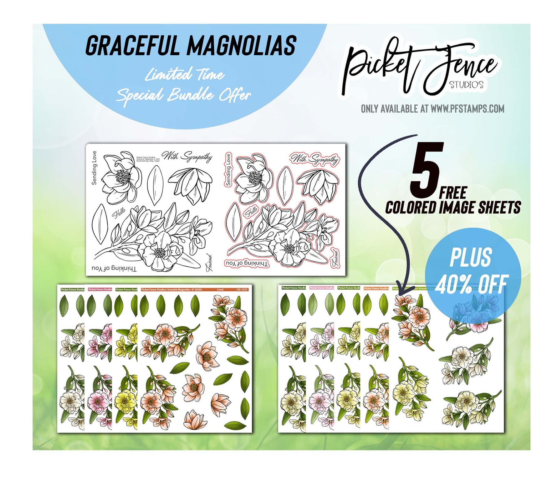 Five FREE Colored Image Sheets plus 40% off Graceful Magnolias with Colored Image Sheets Bundle