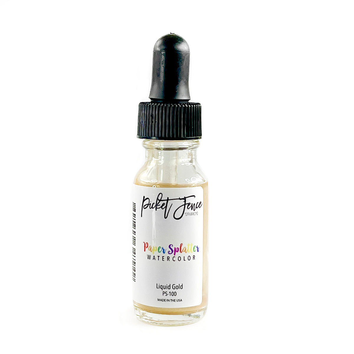 Paper Splatter: Liquid Gold in a 0.5 oz glass jar with dropper
