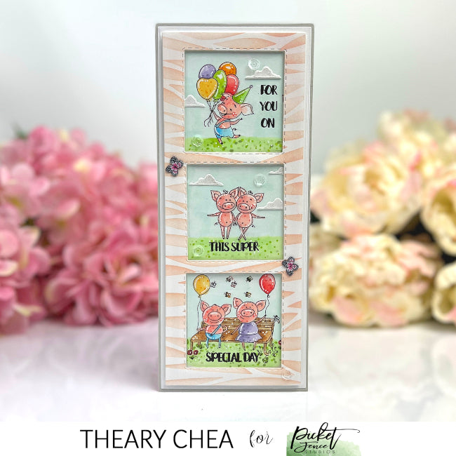 When Birthday Pigs Fly 4" x 8" stamp set with Coordinating Die Set