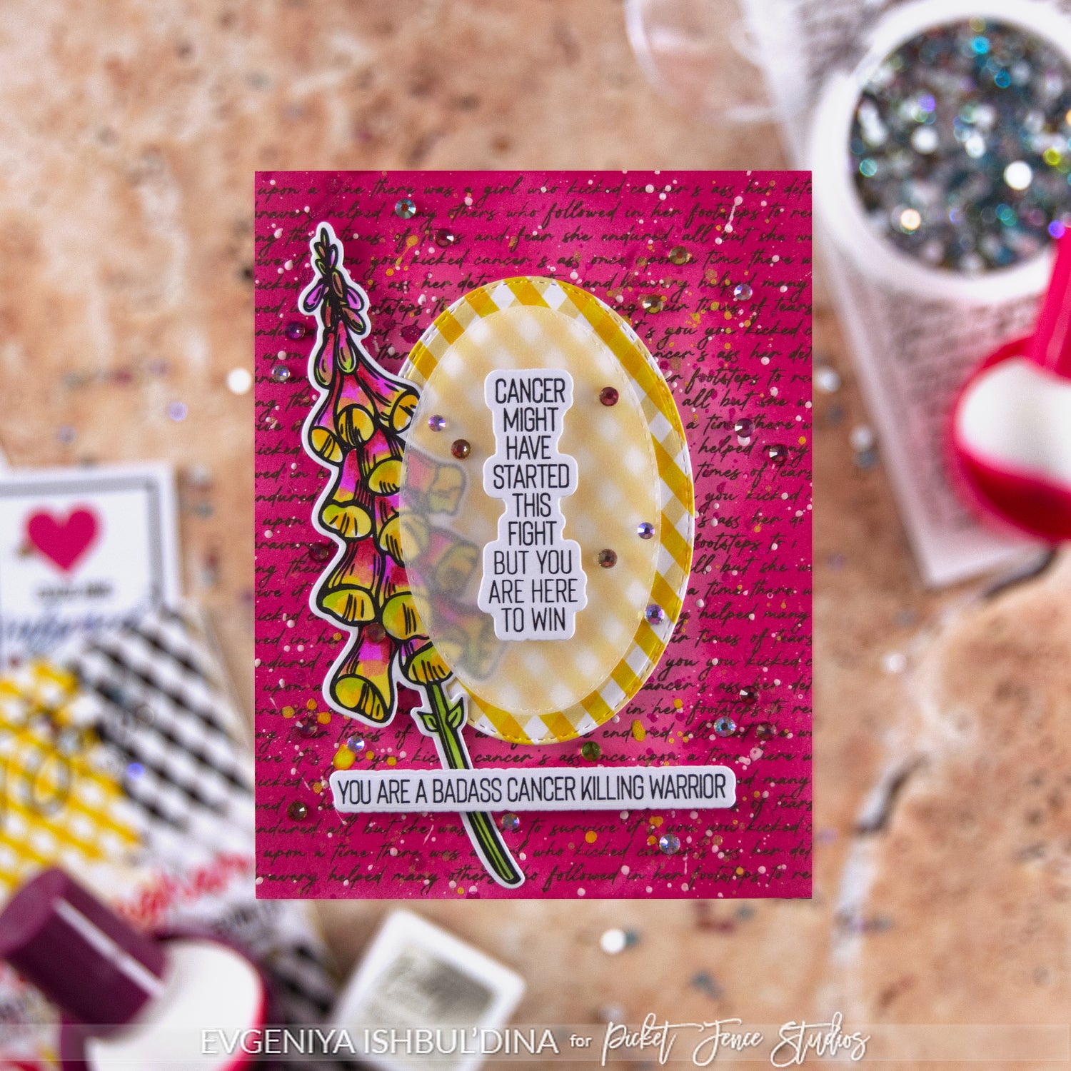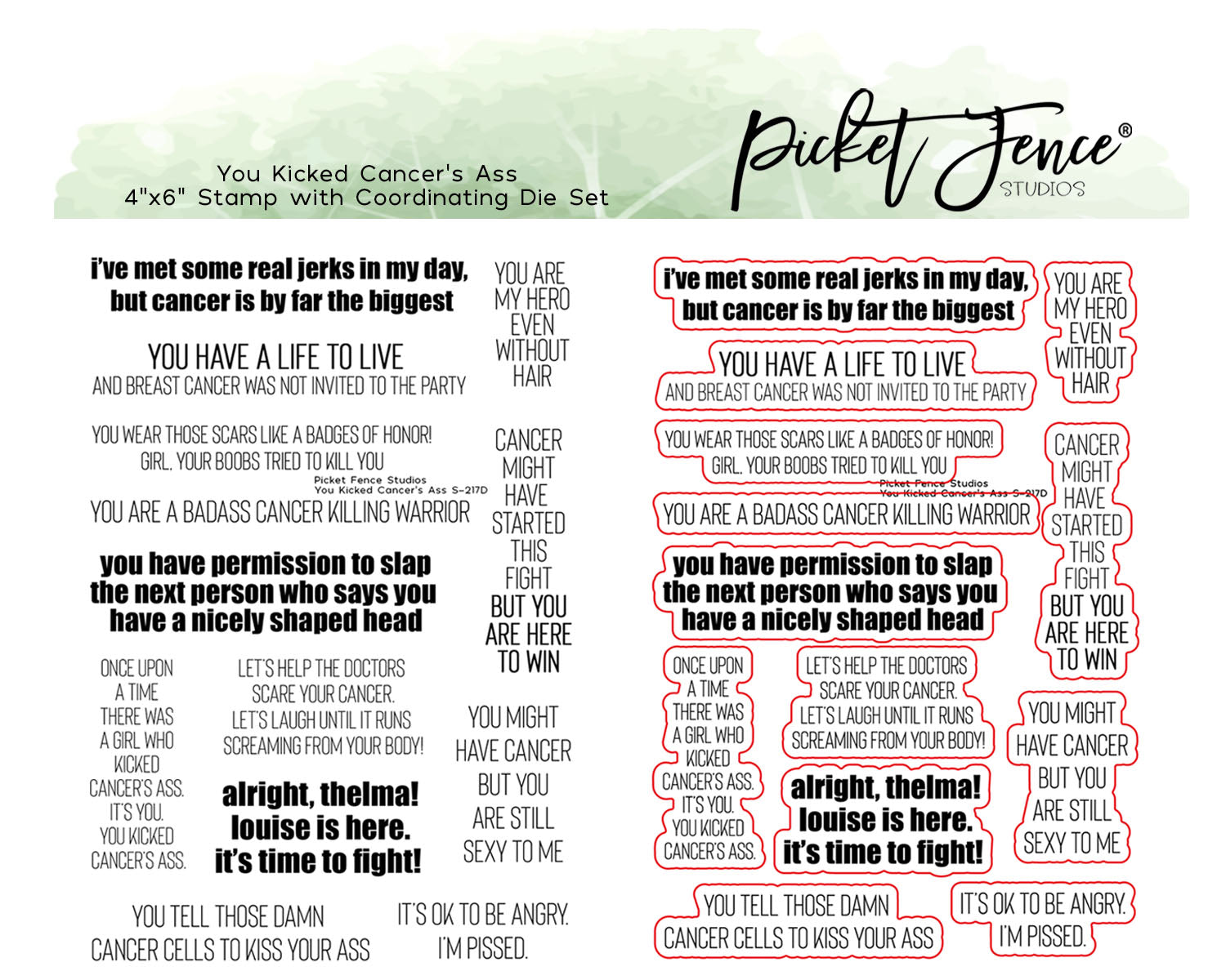 4" x 6" You Kicked Cancer's Ass stamp set with coordinating die set from our Sentiments collection